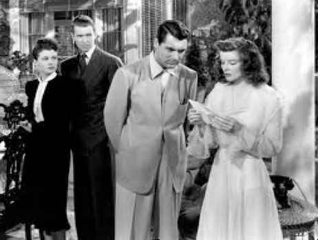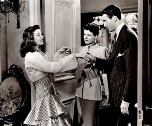 Howard Hughes, who had financed half of the costs of the play, purchased the film rights for Hepburn (they had had an affair several years earlier). MGM was chosen as the studio to make the film because they would give Hepburn approval of her leading men and director. She of course chose George Cukor to direct and her first picks for co-stars were Spencer Tracy (naturally) and Clark Gable – but because neither was available, settled on Cary Grant (who I’d settle for any day of the week) and Jimmy Stewart. Cary Grant, by the way, ending up giving his entire fee of $ 150,000 to the British war effort. Needless to say, the film was a huge success, garnering 5 Oscar nominations, with wins by Jimmy Stewart for best actor and Donald Ogden Stewart for best screenplay.