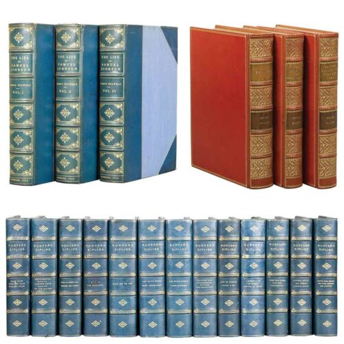 He must have had an enormous library because there are many sets of volumes with fine bindings like this set of Wilde, Boswell & Kipling. Designers looking to fill clients’ empty bookcases will be thrilled!