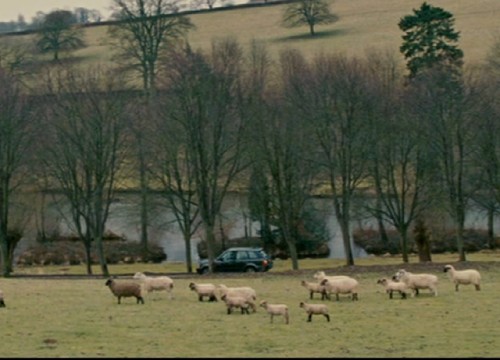 But one of my favorite scenes is when Amanda (Diaz) and Graham (Law) are on their official first date. I love everything about this charming restaurant, in what looks like a historic home, decked out for the holidays. Here is presumably the view down the front lawn (that’s them approaching in their stylish Range Rover) and then the facade (sorry for the less than crisp screen shots – did the best I could).