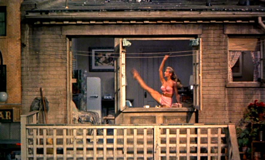 Through Jeffries’ voyeurism, we get slice-of-life glimpses into the lives of those living across the courtyard – a young dancer (Miss Torso), above, a struggling composer, young newlyweds and “Miss Lonelyhearts,” for example. Add to this a wise-cracking Thelma Ritter as his visiting nurse, Grace Kelly as his “too perfect” fashion industry girlfriend and Raymond Burr as the suspicious husband across the way and you have a winning stylish yet thrilling combination. As Jeffries becomes convinced foul play is involved, the suspense builds to a nailbiting climax.