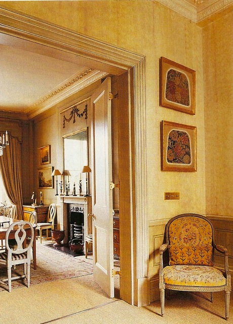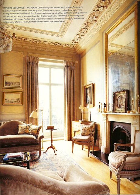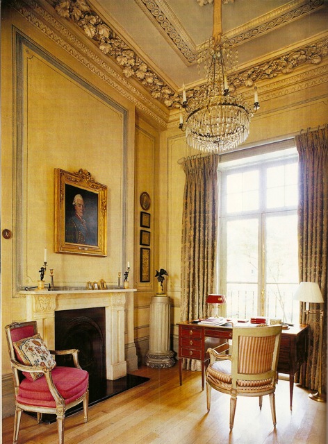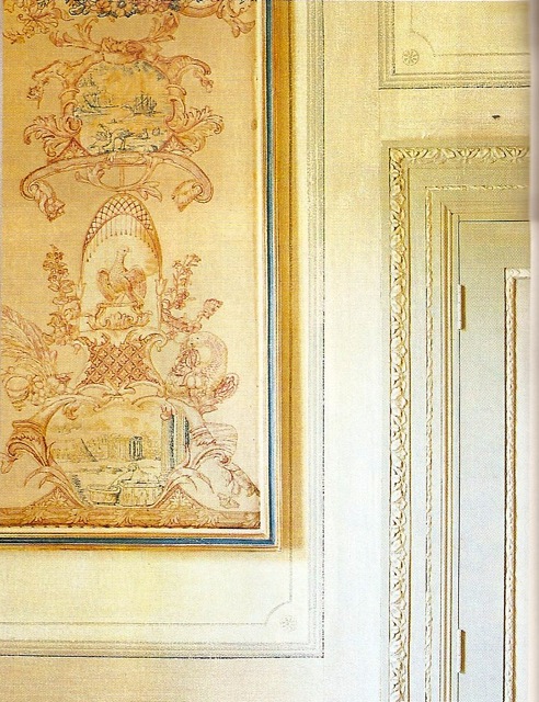 In this additional shot of the drawing room, you can better see the incredible cornice frieze of grapes which Perlhagen painstakingly had restored.