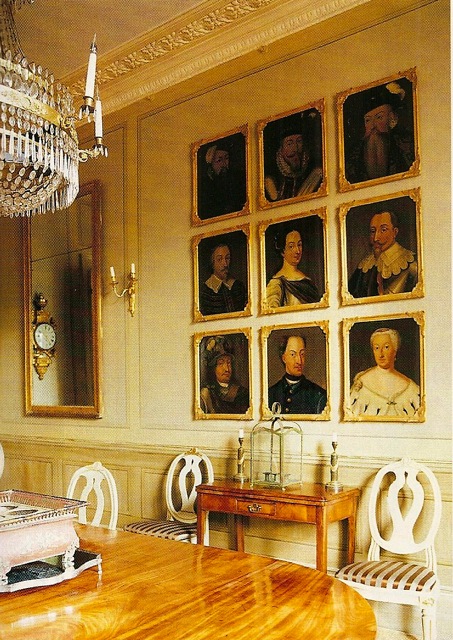Perlhagen is married to a Swede, and much of the furnishing is Gustavian. The dining room features a series of 18th century portraits of Swedish monarchs.