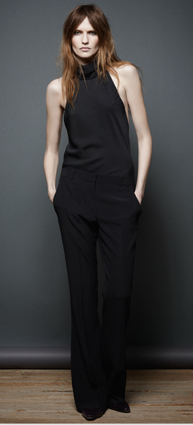 I think she would be the perfect match for a line like The Row, for example, where Mary-Kate and Ashley Olsen have been creating a minimalist laid back aesthetic. They cited Bianca Jagger this season, but Rampling would have been equally if not even more appropriate. Can’t you just see her in some of these looks? Rampling has never chosen the mainstream, instead spending her career in moody intense roles, frequently in what are considered art house films. She is glamorous, mysterious and unsettling – exactly what this line says to me, especially with the choice of hair and make up (which I’m actually not a fan of but I can see how they were trying to counterbalance what could be perceived as uptown chic). Rampling’s controversial (think The Night Porter) sultry performances fit with this collection that seems indeed to be walking the line between elegant beauty and some sort of austere dark perfection, which I adore by the way.