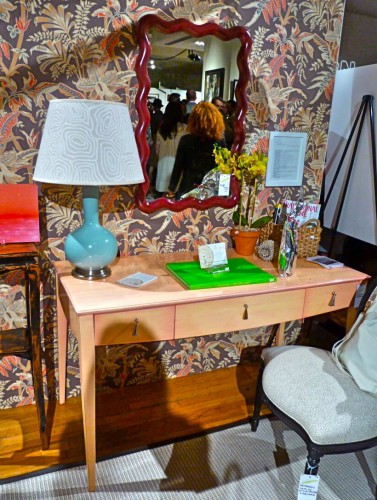 But the pièce de résistance was the fabulous desk donated by The New Traditionalists. I did my best to capture the incredible finish on it, which perfectly complemented the colorway of the vignette.