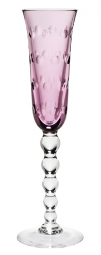 But if I were going to branch out, I love the Saint-Louis Bubbles, designed by Teleri Ann Jones. This famous French manufacturer has a rich heritage and each of these flutes requires up to five days’ work, involving the skills of eight craftsmen to produce the shape and five more to complete the cutting. It is available in clear or a virtual kaleidoscope of colors. This lovely pink is one of the most recent additions.