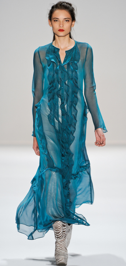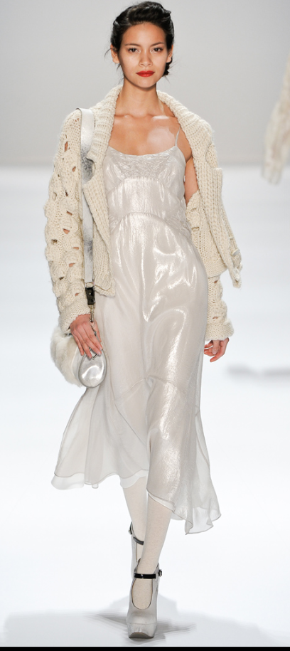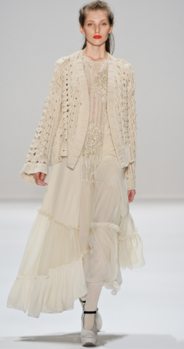 Lepore’s feminine boho vision was in full force in this collection, offering many long flirty flowing dresses matched with interesting knits.
