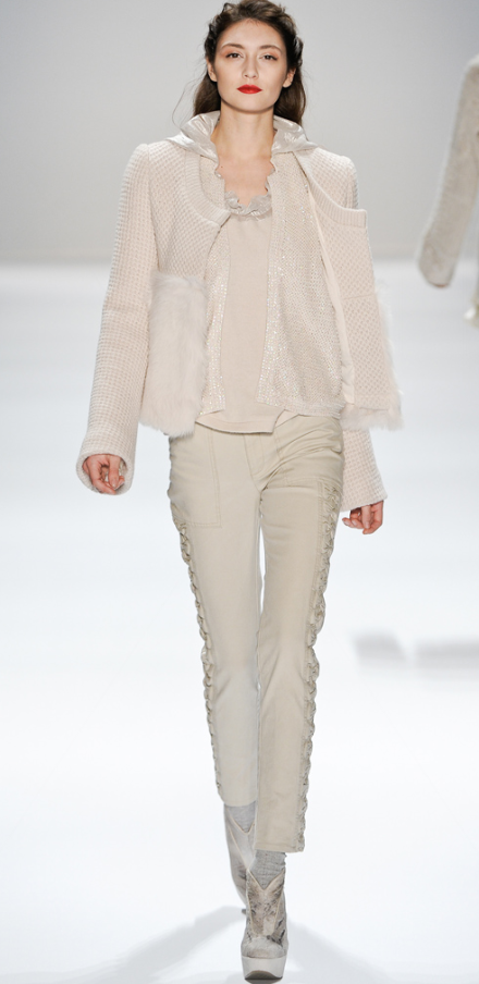 Nanette Lepore, with her daughter Violet, looks happy for a reason. With a renewed spirit, her fall collection reflected a lighter attitude. In fact the first part of the show was indeed ethereal and almost heavenly with the all white feminine layered looks.
