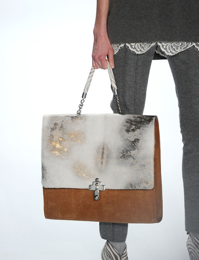 Another standout aspect of the collection was the oversized bag collection designed by Gryson. Frequently carried two at a time, the bags feature a variety of leather and fur in an assortment of sizes.