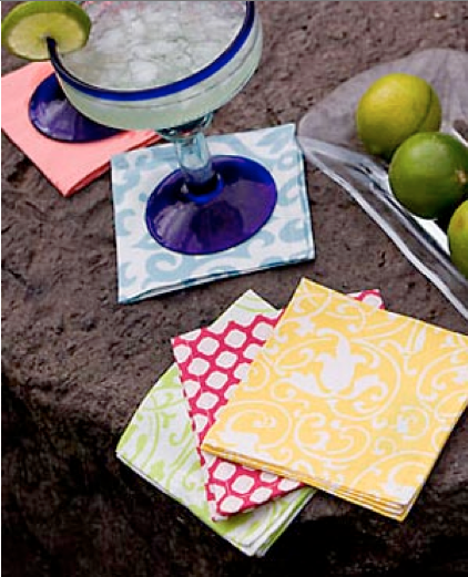 I love tea towels as napkins or lapkins! Bright + fun – also find something very civilized about a cloth cocktail napkin. Great summery feel. ; )