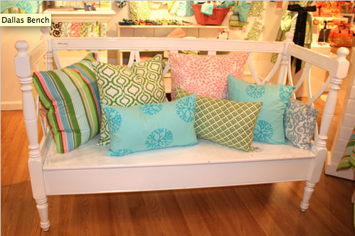 guest towels and pillows. Below is the Portico collection in the Dallas showroom.