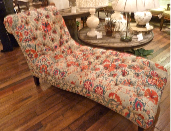 New to this market were some one of a kind pieces such as this fabulous tufted chaise in a vintage fabric – needless to say, it didn’t last long.