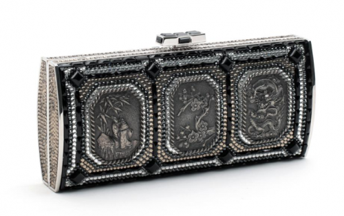 I was attracted to the artisanal quality of the Judith Leiber Three Treasure Evening bag. The texture and interesting visuals seem to whisper a quiet story without shouting.