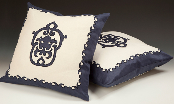 The embroidery also comes pre-made as pillows and throws. Another division, that of wall coverings, will be added in the fall!!