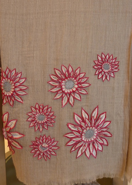 Now that we are in the season of over-air-conditioned indoor spaces, I am always looking for a lovely something to throw over my shoulders. A week or two ago I was in one of my favorite local fashion emporiums, Richard’s in Greenwich, when they were holding a trunk show of cashmere shawls.