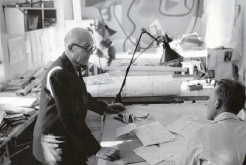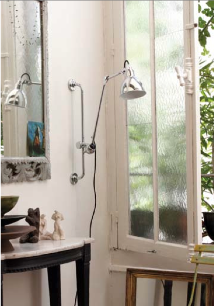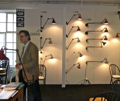 One of my favorite booths was that of the iconic Lampe GRAS. Designed in 1921 by Bernard-Albin Gras for use in offices and industrial settings, it quickly became a cult favorite of many design legends including Le Corbusier (in his studio below), Jacques Ruhlmann and Eileen Gray, who appreciated it for its modern and functional aesthetic. With no screws or welded joints, it was and still is a marvel in purity of design.