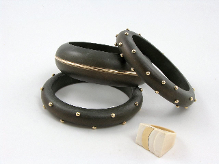 I asked Marcella if there was anything particularly popular lately. Not surprisingly, she singled out the shagreen cuffs, easily customizable in color, size and perhaps with customer’s recylcled pieces.