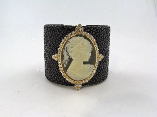 When I visited the salon, I was immediately taken with a case featuring several fabulously adorned shagreen and wooden cuffs. It was then I met Marcella Ciceri, the creator of these and other custom pieces for the firm, shown here with best friend Francesca. It didn’t take long for us to realize we were kindred spirits. I loved everything she designed and Marcella totally “got” my taste and style. We were chatting so much I didn’t realize that, although the first one to arrive that morning, I was the last client left in the space.