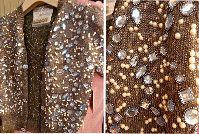 This charming cardigan features the ice blue and jeweled theme embroidery of the runway collection in a more subdued way. I would wear this in a nanosecond!