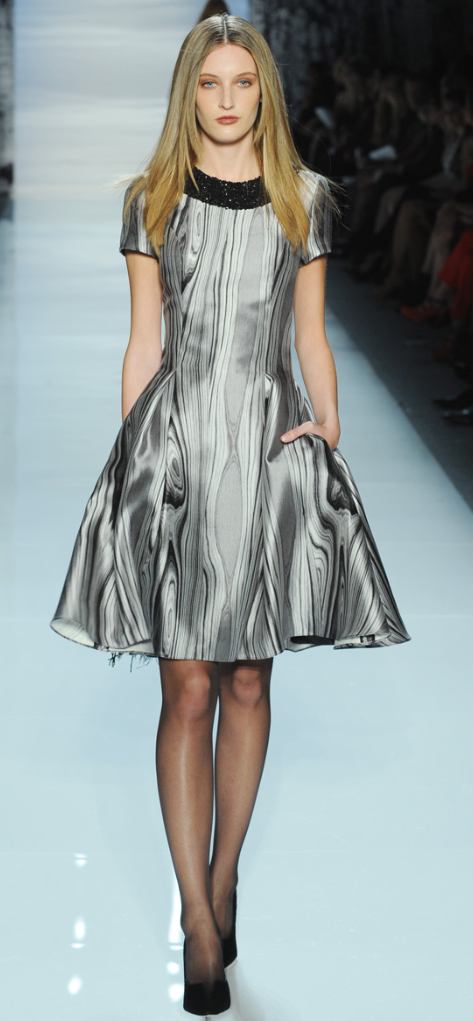 And as we moved into evening, the landscape was cleverly evoked in this woodgrain print on this very pretty party dress with beaded neckline.