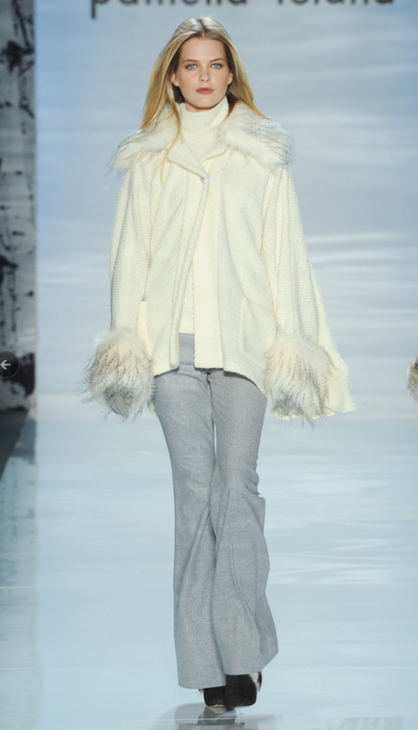 Those of you who are not fans of fur will be thrilled to know that Roland included faux as well such as here on this beautiful ivory wool knit cape.