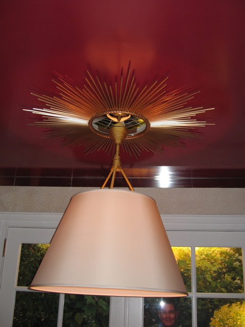 I spent much of the evening with Allison Caccoma, of Caccoma Interiors, a Williams alumna, here in front of the elegant Beveled Edge Mirror We both loved how Bunny handled the ceiling fixture, using a starburst mirror against the lacquer ceiling as a visual segue.