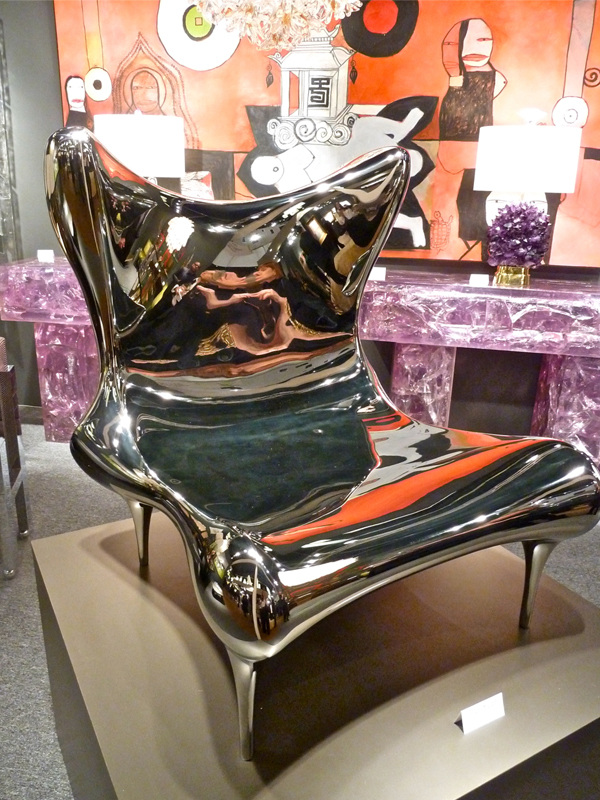 I have been a fan of Craig Van Den Brulle‘s upscale NYC furniture store in Nolita since it opened several years ago. In addition to his own signature CDB collection, he carries an eclectic variety of vintage and contemporary furnishings. His sculptural Riemann chair is available in a variety of finishes. He showed this limited edition of 10 in mirror polished stainless steel.