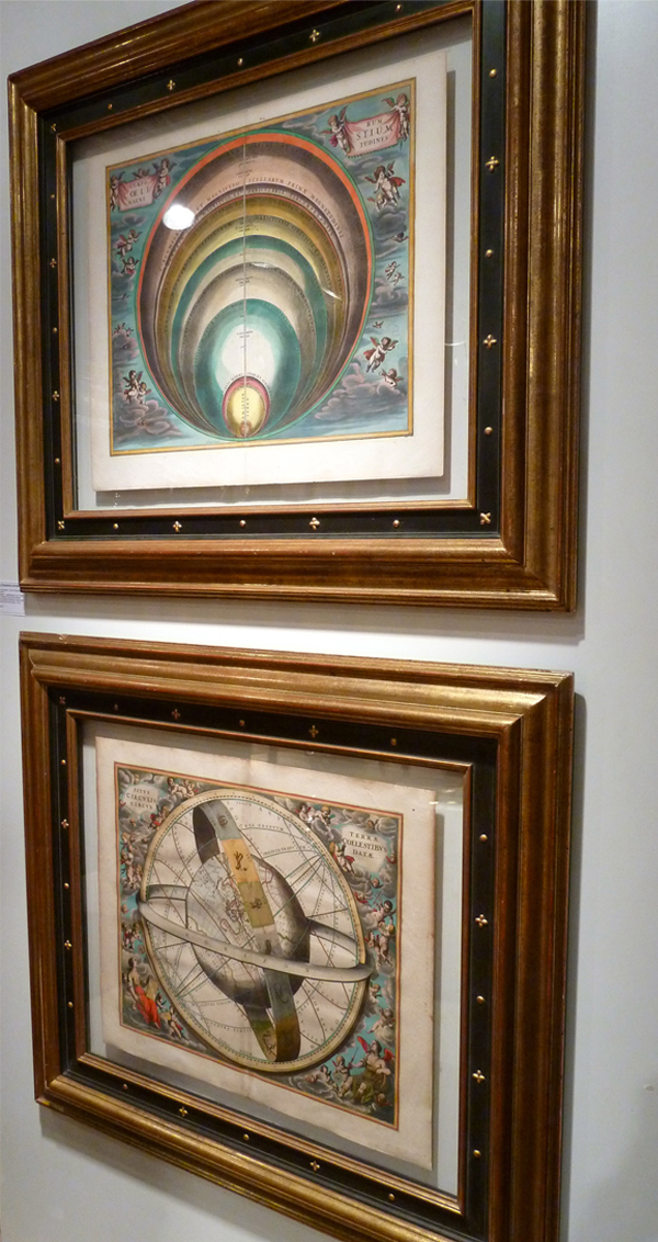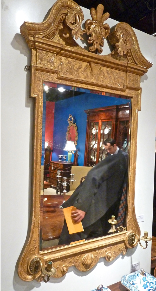 I adore mirrors. They are a great practical and decorative addition to any space. I particularly liked this Chippendale giltwood example from Jayne Thompson Antiques. The exceptionally graceful pediment and scrolled bottom with candle holders were charming distinctive features. They also showed outstanding examples of Andreas Cellarius engravings.