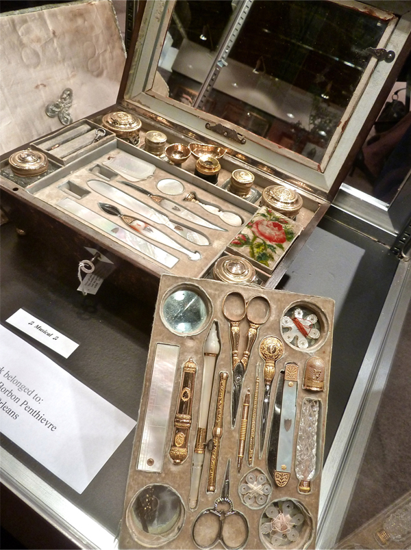 John Jaffa Antiques carries an impressive collection of fine antique objects, including many enamels and automatons. This amazing box, once belonging to Luisa Adelaida de Borbon Penthievre, Dutchess of Orleans caught my eye. I am fascinated by these intricate dressing/traveling boxes where every daily activity required a separate implement. You can see more of these from the Met’s excellent Thinking Outside the Box exhibit last year.