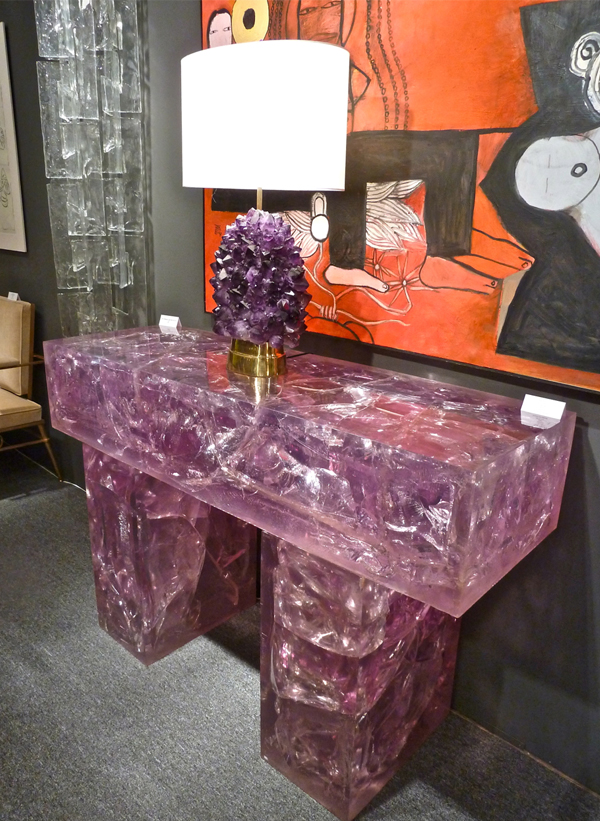 On top sits one of a pair of stunning CDB Amethyst & Bronze Rock Crystal Lamps. Another stellar vintage offering was this striking Venini Amber and Clear Esprit Chandelier from the 70’s. These Venini’s are such incredibly versatile fixtures, beautiful with both traditional and modern styles.