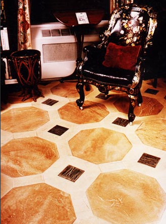 A faux marbelized floor on wood commissioned by Mark Hampton for Carter Burden