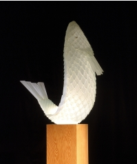 And if you get there before October 31, you can also see the Fish Forms: Lamps by Frank Gehry show. In 1983, after being asked by Formica to incorporate their new product ColorCore in a project, Gehry designed his first fish lamp. Fabricated by the New City Editions studio, Gehry produced about thirty lamps between 1984 and 1986, eight of which are shown. In 1990 he made a version using thin plate glass, one of which is in the permanent collection of the museum and included in the exhibit. The significance of Gehry’s use of the fish form in his work is chronicled in the exhibit by an accompanying slide show.