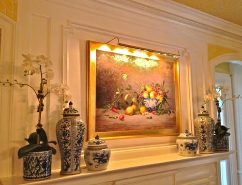 Love the Frances Palmer pot, too. And the little vignette with the blue and white vase and the three paintings — it’s the little details that make a space, I think. A lovely Governors Mansion!